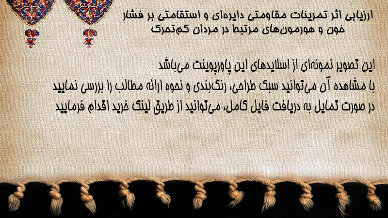 پاورپوینت کامل ارزیابی اثر تمرینات مقاومتی دایرهای و استقامتی بر فشار خون و هورمونهای مرتبط در مردان کمتحرک