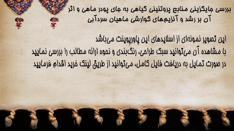پاورپوینت کامل بررسی جایگزینی منابع پروتئینی گیاهی به جای پودر ماهی و اثر آن بر رشد و آنزیمهای گوارشی ماهیان سردآبی