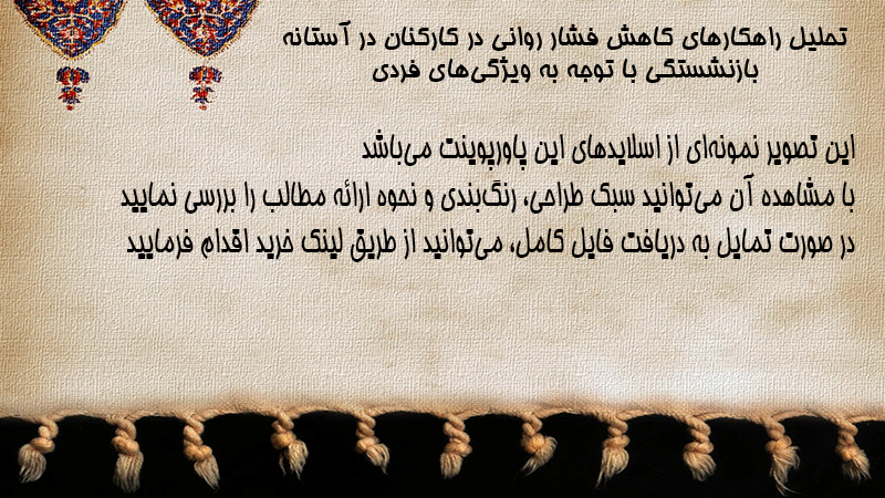 پاورپوینت کامل تحلیل راهکارهای کاهش فشار روانی در کارکنان در آستانه بازنشستگی با توجه به ویژگیهای فردی