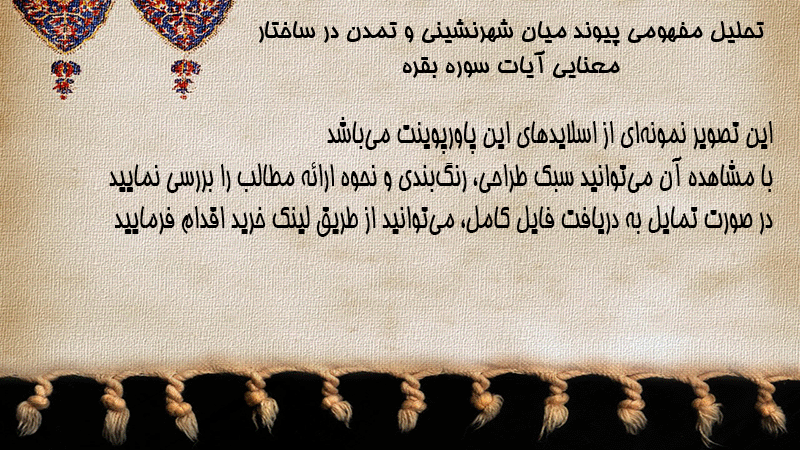 پاورپوینت کامل تحلیل مفهومی پیوند میان شهرنشینی و تمدن در ساختار معنایی آیات سوره بقره
