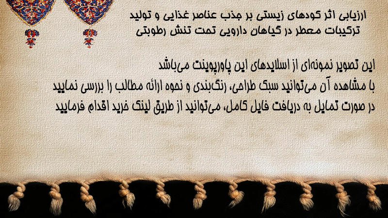 پاورپوینت کامل ارزیابی اثر کودهای زیستی بر جذب عناصر غذایی و تولید ترکیبات معطر در گیاهان دارویی تحت تنش رطوبتی