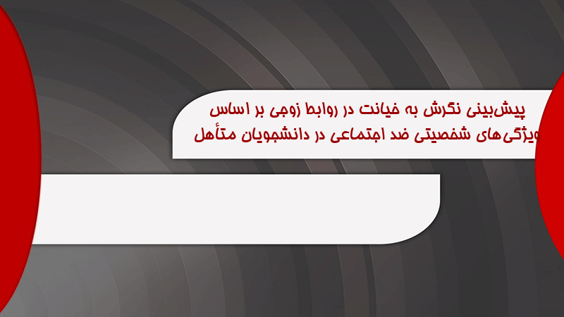 پاورپوینت کامل پیشبینی نگرش به خیانت در روابط زوجی بر اساس ویژگیهای شخصیتی ضد اجتماعی در دانشجویان متأهل