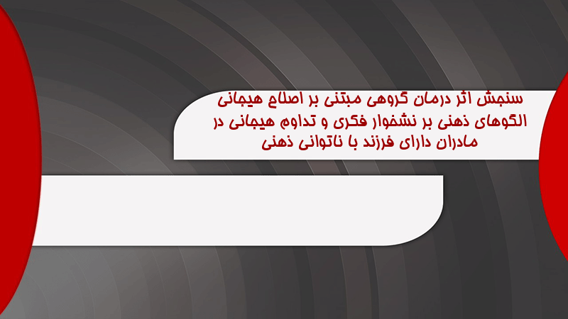 پاورپوینت کامل سنجش اثر درمان گروهی مبتنی بر اصلاح هیجانی الگوهای ذهنی بر نشخوار فکری و تداوم هیجانی در مادران دارای فرزند با ناتوانی ذهنی