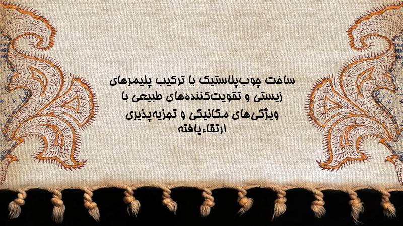 پاورپوینت کامل ساخت چوبپلاستیک با ترکیب پلیمرهای زیستی و تقویتکنندههای طبیعی با ویژگیهای مکانیکی و تجزیهپذیری ارتقاءیافته
