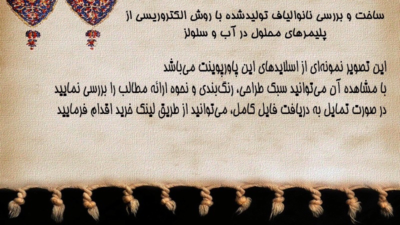 پاورپوینت کامل ساخت و بررسی نانوالیاف تولیدشده با روش الکتروریسی از پلیمرهای محلول در آب و سلولز