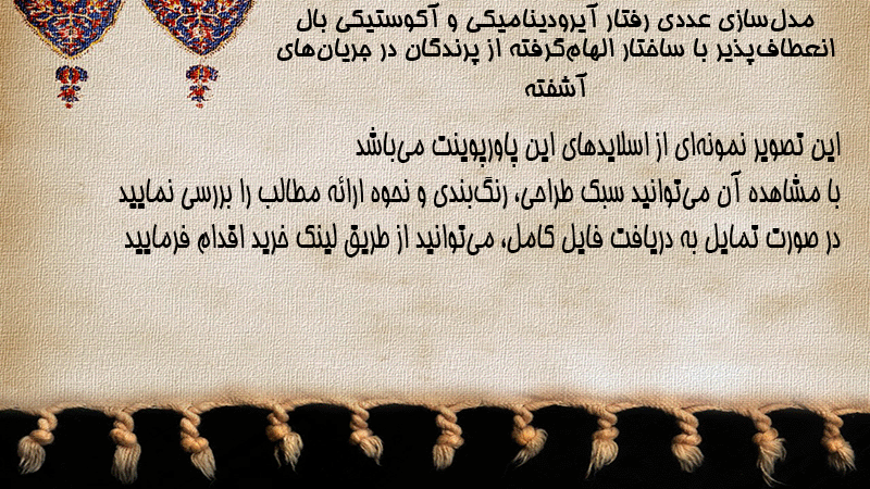 پاورپوینت کامل مدلسازی عددی رفتار آیرودینامیکی و آکوستیکی بال انعطافپذیر با ساختار الهامگرفته از پرندگان در جریانهای آشفته