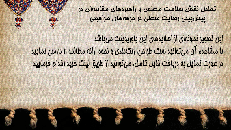 پاورپوینت کامل تحلیل نقش سلامت معنوی و راهبردهای مقابلهای در پیشبینی رضایت شغلی در حرفههای مراقبتی