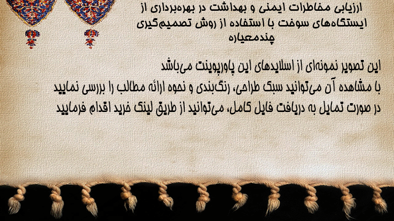 پاورپوینت کامل ارزیابی مخاطرات ایمنی و بهداشت در بهرهبرداری از ایستگاههای سوخت با استفاده از روش تصمیمگیری چندمعیاره