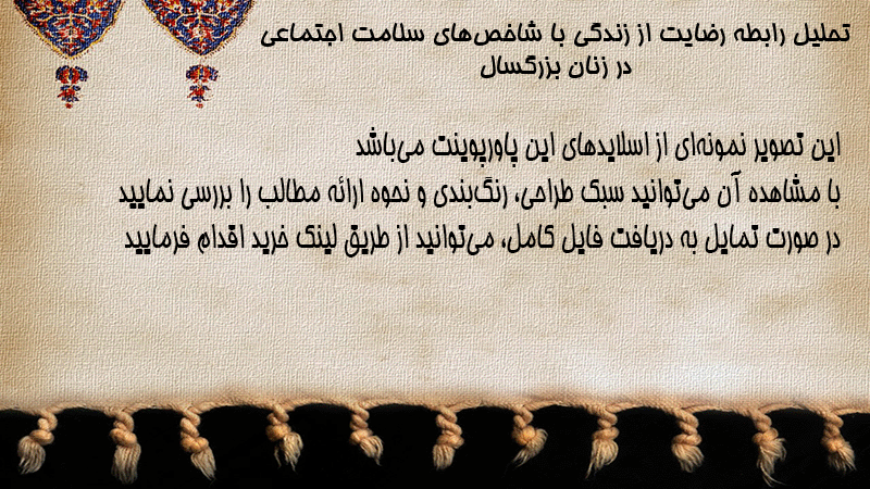 پاورپوینت کامل تحلیل رابطه رضایت از زندگی با شاخصهای سلامت اجتماعی در زنان بزرگسال