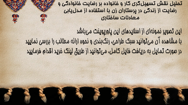 پاورپوینت کامل تحلیل نقش تسهیلگری کار و خانواده بر رضایت خانوادگی و رضایت از زندگی در پرستاران زن با استفاده از مدلیابی معادلات ساختاری