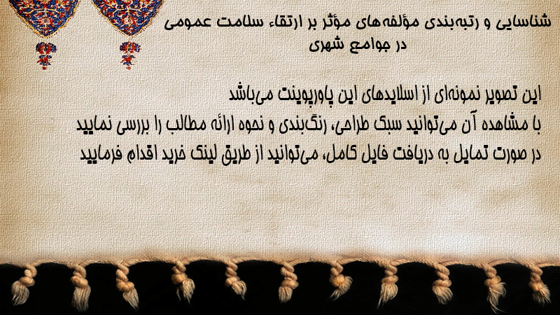 پاورپوینت کامل شناسایی و رتبهبندی مؤلفههای مؤثر بر ارتقاء سلامت عمومی در جوامع شهری