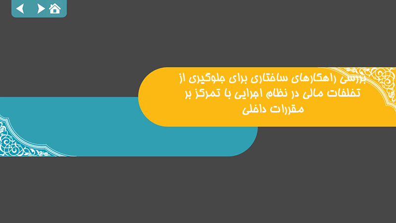 پاورپوینت کامل بررسی راهکارهای ساختاری برای جلوگیری از تخلفات مالی در نظام اجرایی با تمرکز بر مقررات داخلی