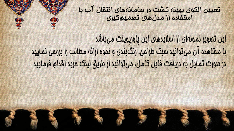 پاورپوینت کامل تعیین الگوی بهینه کشت در سامانههای انتقال آب با استفاده از مدلهای تصمیمگیری