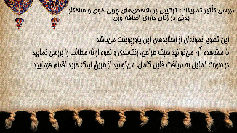 پاورپوینت کامل بررسی تأثیر تمرینات ترکیبی بر شاخصهای چربی خون و ساختار بدنی در زنان دارای اضافه وزن