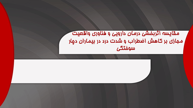 پاورپوینت کامل مقایسه اثربخشی درمان دارویی و فناوری واقعیت مجازی بر کاهش اضطراب و شدت درد در بیماران دچار سوختگی