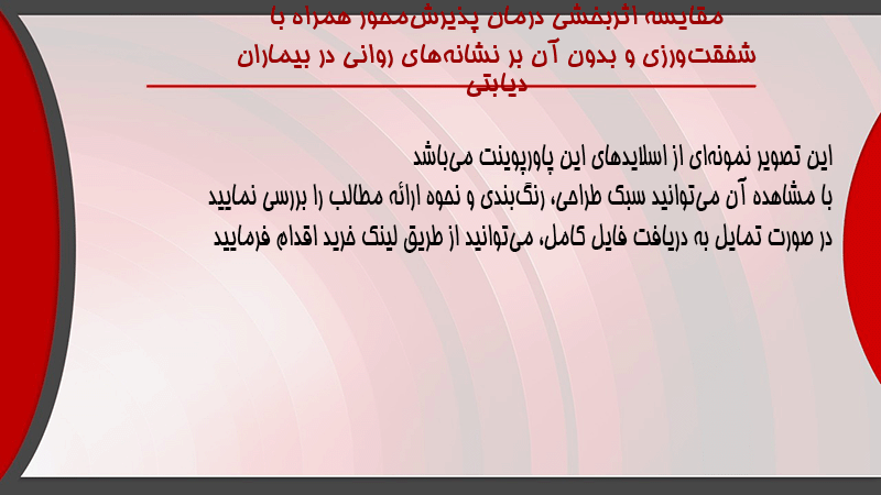 پاورپوینت کامل مقایسه اثربخشی درمان پذیرشمحور همراه با شفقتورزی و بدون آن بر نشانههای روانی در بیماران دیابتی