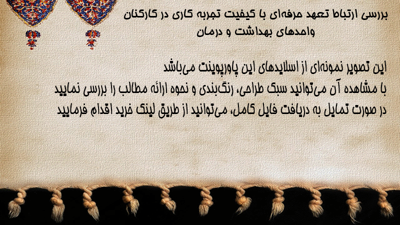پاورپوینت کامل بررسی ارتباط تعهد حرفهای با کیفیت تجربه کاری در کارکنان واحدهای بهداشت و درمان