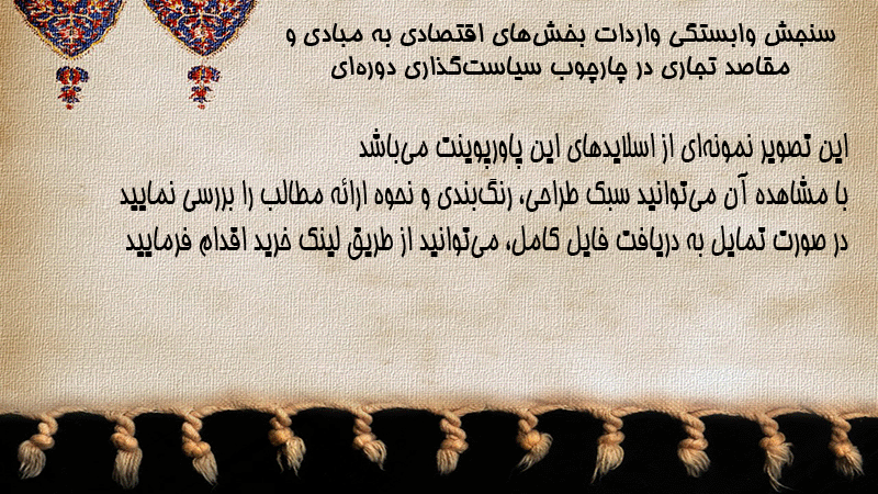 پاورپوینت کامل سنجش وابستگی واردات بخشهای اقتصادی به مبادی و مقاصد تجاری در چارچوب سیاستگذاری دورهای