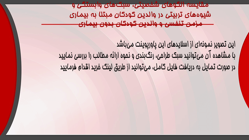 پاورپوینت کامل مقایسه الگوهای شخصیتی، سبکهای وابستگی و شیوههای تربیتی در والدین کودکان مبتلا به بیماری مزمن تنفسی و والدین کودکان بدون بیماری