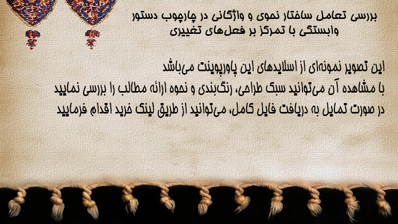 پاورپوینت کامل بررسی تعامل ساختار نحوی و واژگانی در چارچوب دستور وابستگی با تمرکز بر فعلهای تغییری