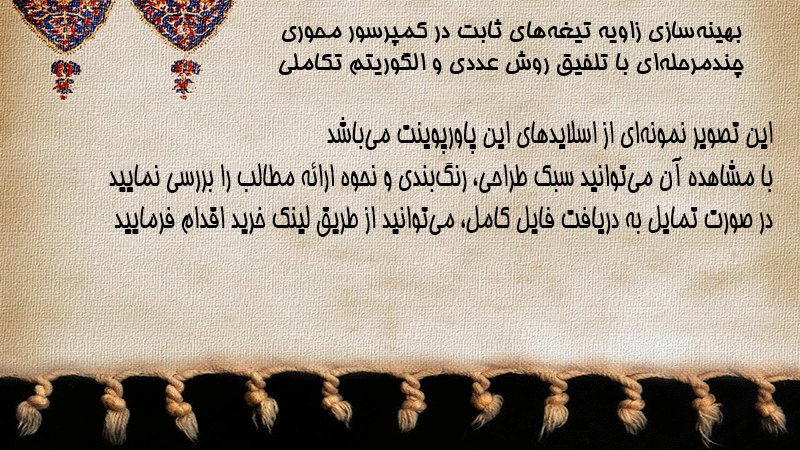 پاورپوینت کامل بهینهسازی زاویه تیغههای ثابت در کمپرسور محوری چندمرحلهای با تلفیق روش عددی و الگوریتم تکاملی