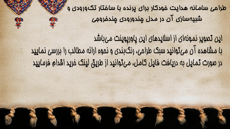پاورپوینت کامل طراحی سامانه هدایت خودکار برای پرنده با ساختار تکورودی و شبیهسازی آن در مدل چندورودی چندخروجی