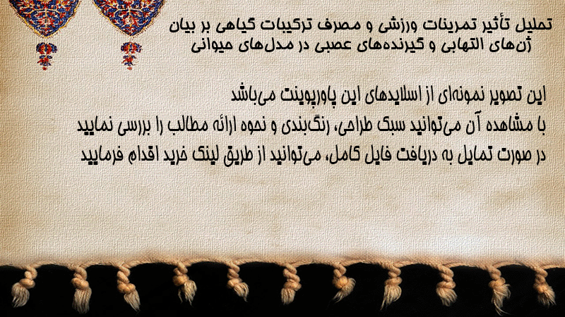 پاورپوینت کامل تحلیل تأثیر تمرینات ورزشی و مصرف ترکیبات گیاهی بر بیان ژنهای التهابی و گیرندههای عصبی در مدلهای حیوانی