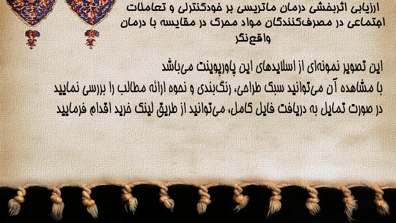 پاورپوینت کامل ارزیابی اثربخشی درمان ماتریسی بر خودکنترلی و تعاملات اجتماعی در مصرفکنندگان مواد محرک در مقایسه با درمان واقعنگر