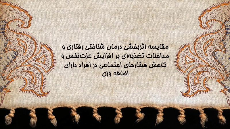 پاورپوینت کامل مقایسه اثربخشی درمان شناختی رفتاری و مداخلات تغذیهای بر افزایش عزتنفس و کاهش فشارهای اجتماعی در افراد دارای اضافه وزن