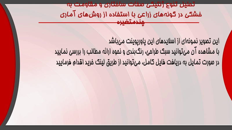 پاورپوینت کامل تحلیل تنوع ژنتیکی صفات ساختاری و مقاومت به خشکی در گونههای زراعی با استفاده از روشهای آماری چندمتغیره