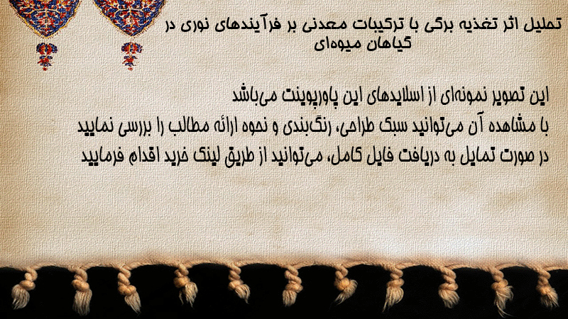 پاورپوینت کامل تحلیل اثر تغذیه برگی با ترکیبات معدنی بر فرآیندهای نوری در گیاهان میوهای