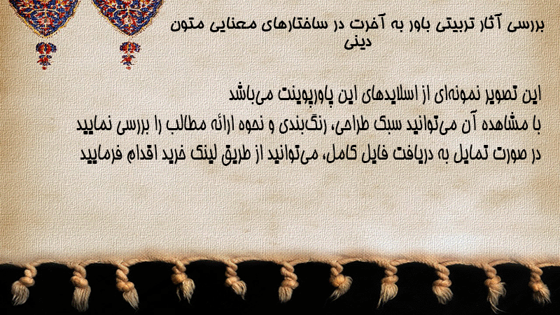 پاورپوینت کامل بررسی آثار تربیتی باور به آخرت در ساختارهای معنایی متون دینی