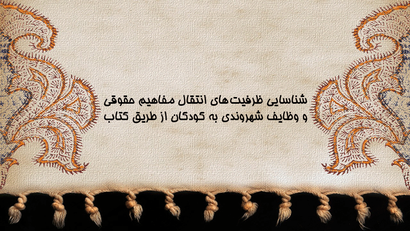 پاورپوینت کامل شناسایی ظرفیتهای انتقال مفاهیم حقوقی و وظایف شهروندی به کودکان از طریق کتاب