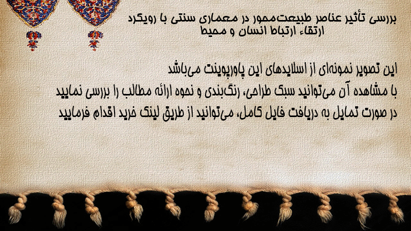 پاورپوینت کامل بررسی تأثیر عناصر طبیعتمحور در معماری سنتی با رویکرد ارتقاء ارتباط انسان و محیط