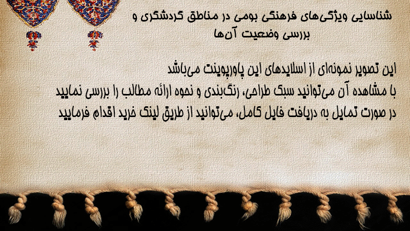 پاورپوینت کامل شناسایی ویژگیهای فرهنگی بومی در مناطق گردشگری و بررسی وضعیت آنها