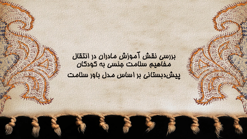 پاورپوینت کامل بررسی نقش آموزش مادران در انتقال مفاهیم سلامت جنسی به کودکان پیشدبستانی بر اساس مدل باور سلامت