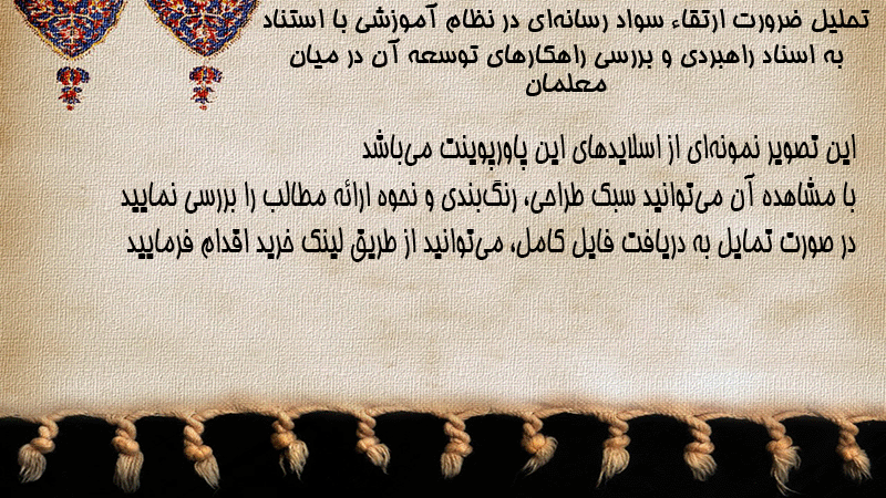 پاورپوینت کامل تحلیل ضرورت ارتقاء سواد رسانهای در نظام آموزشی با استناد به اسناد راهبردی و بررسی راهکارهای توسعه آن در میان معلمان