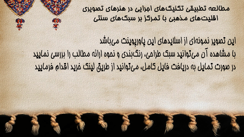 پاورپوینت کامل مطالعه تطبیقی تکنیکهای اجرایی در هنرهای تصویری اقلیتهای مذهبی با تمرکز بر سبکهای سنتی