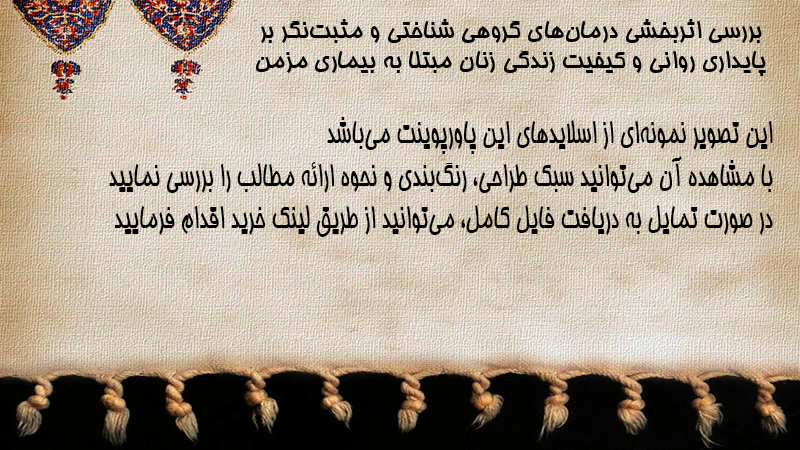 پاورپوینت کامل بررسی اثربخشی درمانهای گروهی شناختی و مثبتنگر بر پایداری روانی و کیفیت زندگی زنان مبتلا به بیماری مزمن
