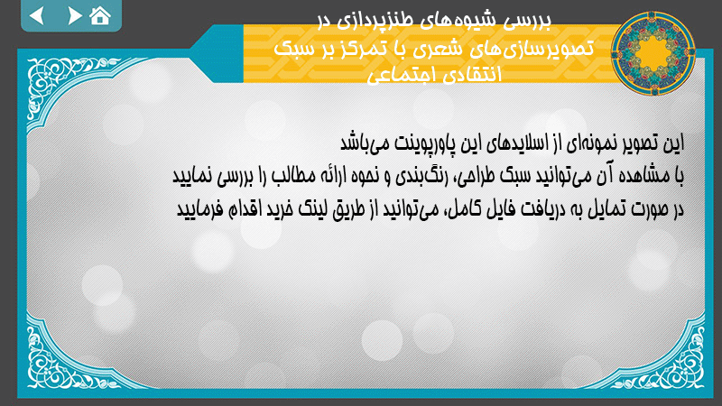 پاورپوینت کامل بررسی شیوههای طنزپردازی در تصویرسازیهای شعری با تمرکز بر سبک انتقادی اجتماعی