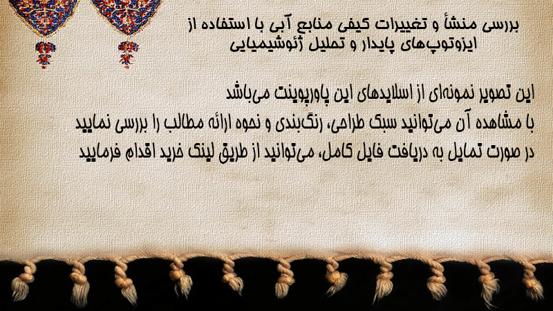 پاورپوینت کامل بررسی منشأ و تغییرات کیفی منابع آبی با استفاده از ایزوتوپهای پایدار و تحلیل ژئوشیمیایی