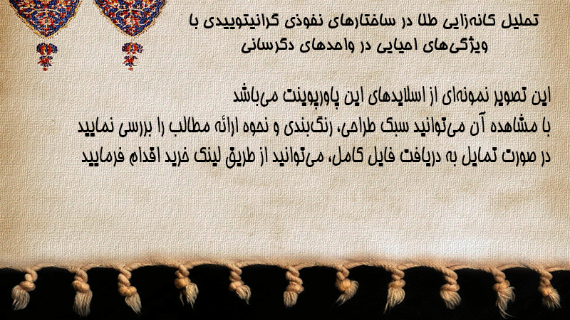 پاورپوینت کامل تحلیل کانهزایی طلا در ساختارهای نفوذی گرانیتوییدی با ویژگیهای احیایی در واحدهای دگرسانی
