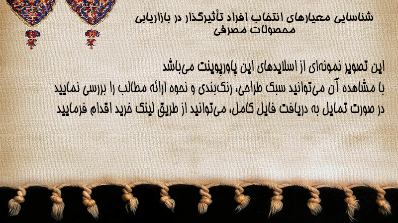 پاورپوینت کامل شناسایی معیارهای انتخاب افراد تأثیرگذار در بازاریابی محصولات مصرفی