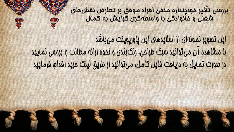 پاورپوینت کامل بررسی تأثیر خودپنداره منفی افراد موفق بر تعارض نقشهای شغلی و خانوادگی با واسطهگری گرایش به کمال