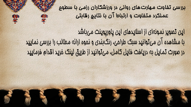 پاورپوینت کامل بررسی تفاوت مهارتهای روانی در ورزشکاران رزمی با سطوح عملکرد متفاوت و ارتباط آن با نتایج رقابتی