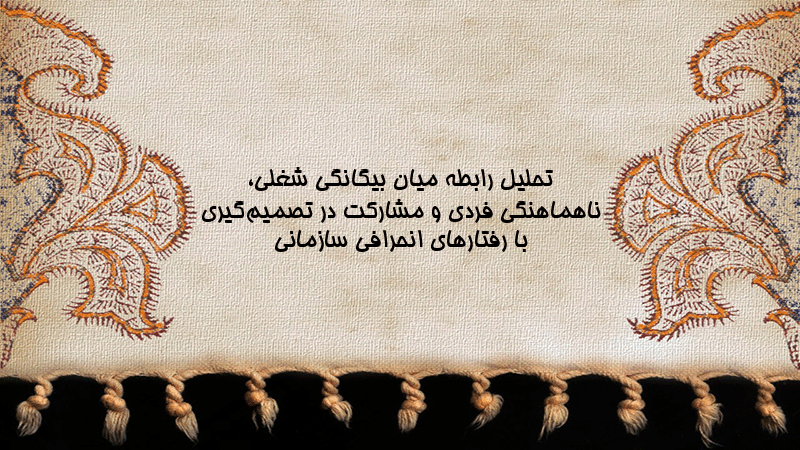 پاورپوینت کامل تحلیل رابطه میان بیگانگی شغلی، ناهماهنگی فردی و مشارکت در تصمیمگیری با رفتارهای انحرافی سازمانی