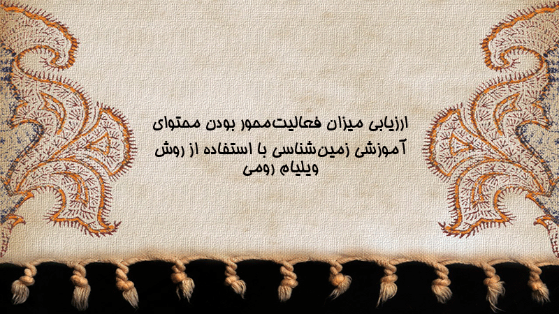 پاورپوینت کامل ارزیابی میزان فعالیتمحور بودن محتوای آموزشی زمینشناسی با استفاده از روش ویلیام رومی