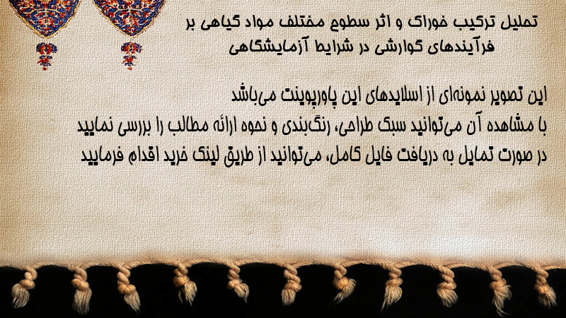 پاورپوینت کامل تحلیل ترکیب خوراک و اثر سطوح مختلف مواد گیاهی بر فرآیندهای گوارشی در شرایط آزمایشگاهی