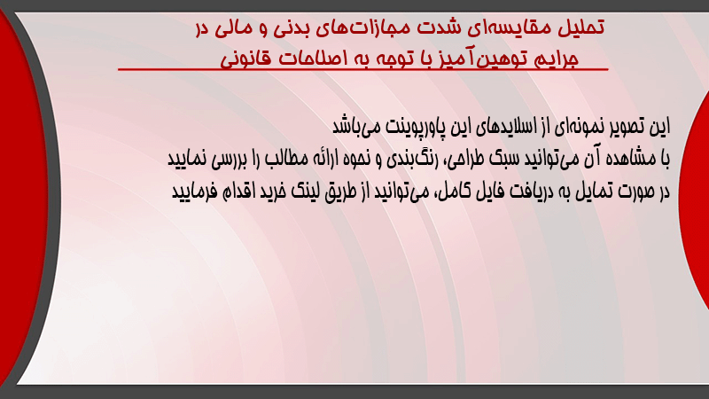 پاورپوینت کامل تحلیل مقایسهای شدت مجازاتهای بدنی و مالی در جرایم توهینآمیز با توجه به اصلاحات قانونی