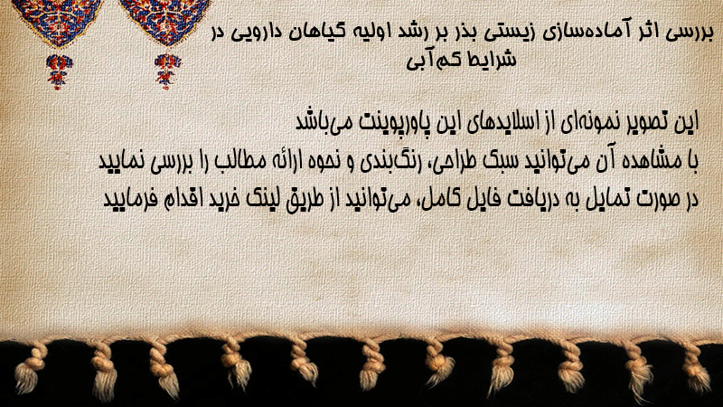 پاورپوینت کامل بررسی اثر آمادهسازی زیستی بذر بر رشد اولیه گیاهان دارویی در شرایط کمآبی